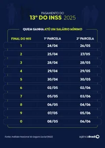 A antecipação do décimo terceiro para aposentados, pensionistas e beneficiários de auxílios do Instituto Nacional do Seguro Social (INSS) injetará R$ 73,3 bilhões na economia, divulgou nesta quinta-feira (3) o Ministério da Previdência Social. O pagamento beneficiará 34,2 milhões